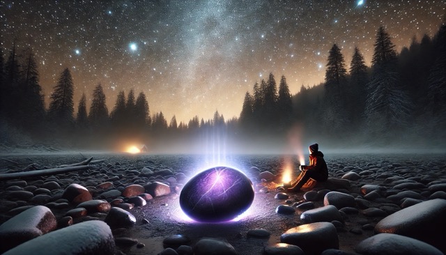 Я искал его долго, больше часа, но всё-таки нашёл. Он был красивый, темно серый, гладкий и оплавленный, с фиолетовым отливом и совершенно холодный. Его холод был странный. Когда я держал его в руках, он был очень холодным, но стоило положить его на угли, так они разгорались с еще большей силой. Я экспериментировал очень долго и уснул прямо на нём.